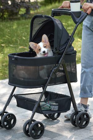 3 in 1 Folding Dog Stroller, Zoosky Pet Stroller for Small/Medium Dogs, Cat Stroller w/Removable Carrier, Car Seat, Sun Shades, Waterproof Small Dog Stroller, All Terrain Cat Stroller for 2 Cats