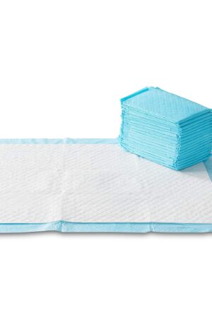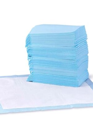 Amazon Basics Dog and Puppy Pee Pads with Leak-Proof Quick-Dry Design for Potty Training, Standard Absorbency, Regular Size, 22 x 22 Inches, Pack of 100, Blue & White