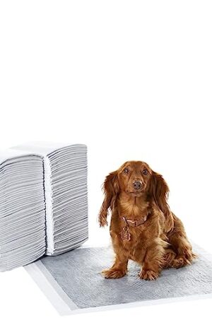 Amazon Basics Leak-Proof Puppy Training Pads, Odor Control, Quick-Dry Surface, Regular, 120-Pack, Gray