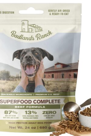 BADLANDS RANCH – Superfood Complete, Adult Dog Food, Air-Dried, High Protein, Zero Fillers, Superfood Nutrition by Katherine Heigl (24 oz., Beef Formula)