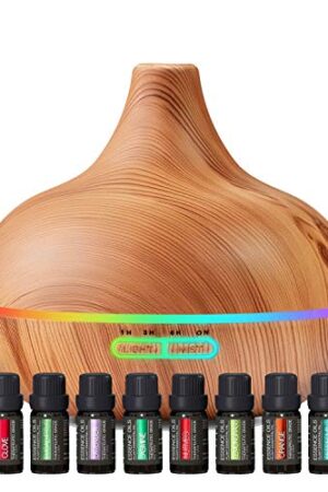 Ultimate Aromatherapy Diffuser & Essential Oil Set – Ultrasonic Top 10 Oils Modern with 4 Timer 7 Ambient Light Settings Therapeutic Grade Lavender