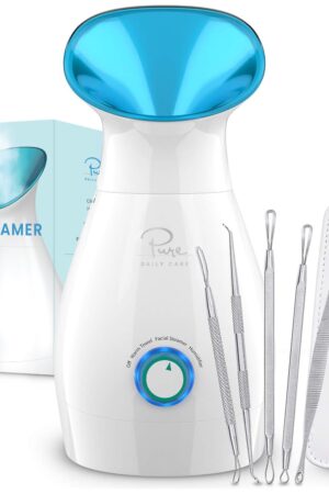 NanoSteamer Large 3-in-1 Nano Ionic Facial Steamer with Precise Temp Control – Humidifier – Unclogs Pores – Blackheads – Spa Quality – Bonus 5 Piece Stainless Steel Skin Kit (Teal)