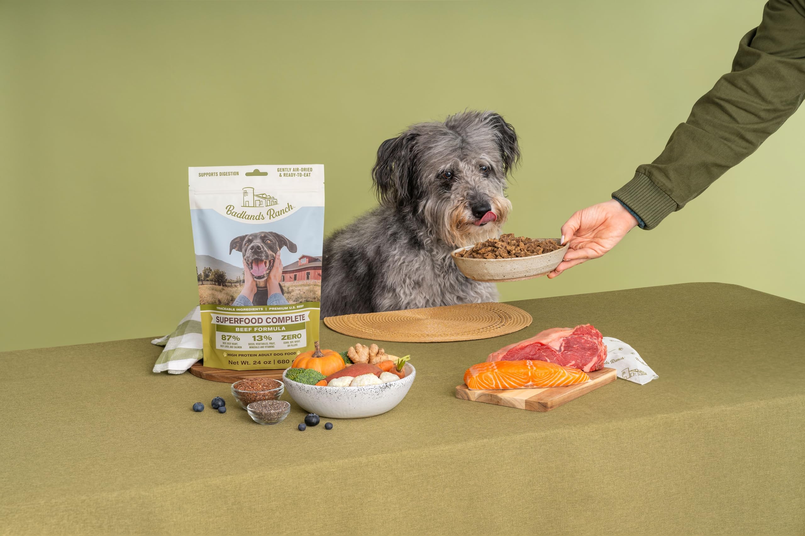 Details: Treat your dog to a meal as good as they are with Badlands Ranch Superfood Complete Beef Formula Adult Dog Food. This tasty dish is crafted with hand-selected ingredients for nutrition to help support smooth digestion and overall well-being. High-heat cooking can add unhealthy by-products to your dog’s food. Superfood Complete is naturally preserved using a low-and-slow drying method to combine the convenience of kibble with the benefits of whole foods. This meaty recipe features beef, beef heart, and beef liver. Beef is an excellent source of protein and minerals like iron. It’s also packed with gut-healthy vegetables and a variety of superfoods for nose-to-tail health. Superfood Complete makes it easy to support a healthy, delicious life!