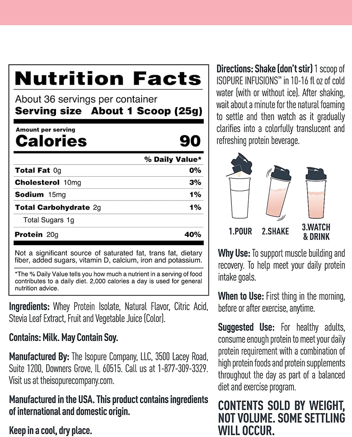 - ONLY 5 INGREDIENTS: With just 5 ingredients & no artificial flavors or colors, Isopure Infusions is the complete clean source of protein to add to your diet!