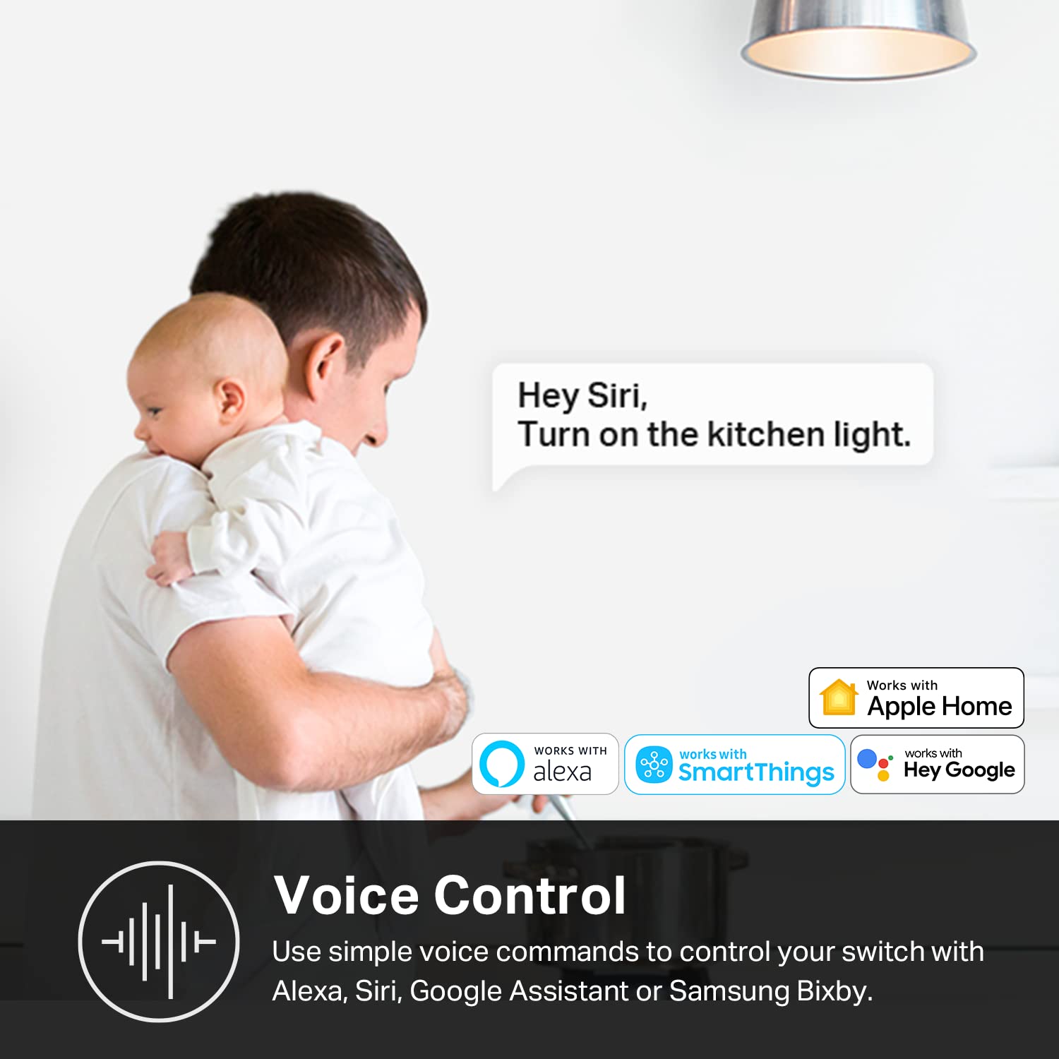 - 【Apple HomeKit Support】This Apple HomeKit compatible smart switch fully integrates into your Apple ecosystem, just ask Siri to turn on/off the lights in your home. (Apple HomeKit remote control requires an additional networked Apple device at home such as a HomePod or Apple TV.)