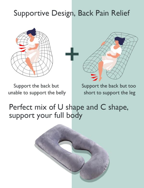 - Deeply Sleep With Momcozy Maternity Pillow – Our pregnancy body pillow helps improve blood circulation all night long and releases your body pressure, effectively relieves back sore, hip pain and leg swelling. Providing exceptional comfort, pain relief, and quality rest for expecting mothers.